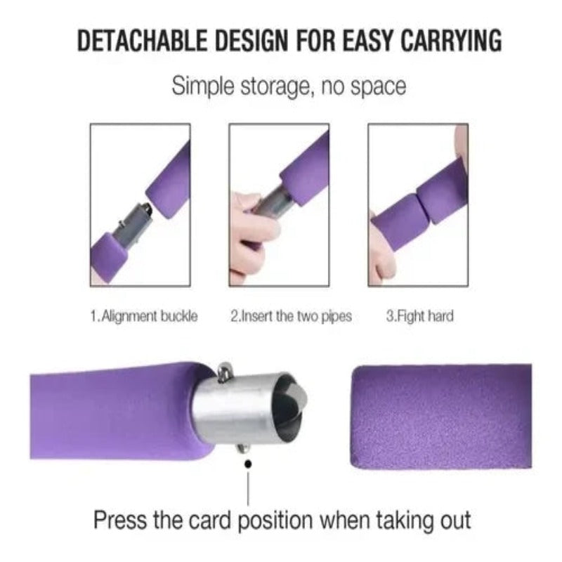 Esta barra de Pilates es una herramienta versátil que te permite realizar una variedad de ejercicios para fortalecer y tonificar diferentes áreas del cuerpo, especialmente la cintura y el abdomen. Es un equipo de ejercicio portátil que es fácil de usar en casa o en cualquier lugar donde desees realizar tus rutinas de yoga o pilates. El hecho de que se pliegue o desmonte fácilmente facilita su almacenamiento cuando no lo estés usando. La barra ofrece una forma conveniente de incorporar el ejercicio en tu rutina diaria para mejorar tu salud y forma física.