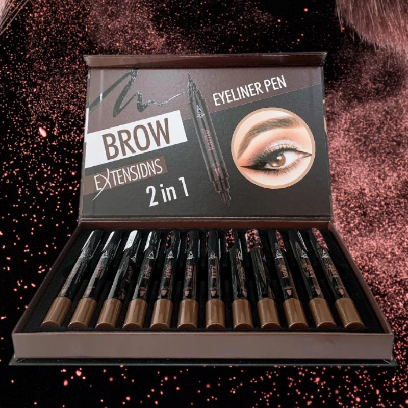 ✨ Delineador y Pluma 2 en 1: Este producto es una joya porque te ofrece dos productos esenciales en uno. En un extremo, encontrarás un delineador líquido en un tono NEGRO MATTE, perfecto para crear líneas precisas y audaces en tus ojos. En el otro extremo, tienes un lápiz microblanding en un tono CAFÉ OSCURO, ideal para dar forma y definir tus cejas. ¡Dos productos esenciales en uno solo!