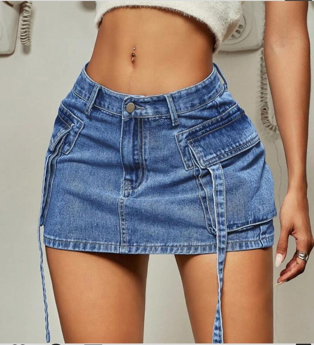HERMOSA FALDA CON BOTONES, CIERRE, BOLSILLOS LATERALES JEAN RIGIDO TALLA 6 8 10 12 14 16TONO AZUL CLARO MEDIO OSCURO NEGROGRIS HUMOBLANCO