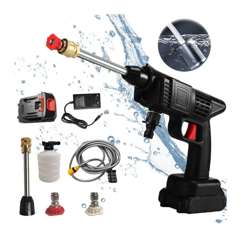 Esta versátil herramienta incluye boquillas de 0° y 40°, junto con una regadera de espuma para limpiar a fondo automóviles y superficies. Su diseño inalámbrico, ligero y compacto te permite llevarla a cualquier lugar y extraer agua de forma rápida y sencilla. Además, se entrega con una funda de almacenamiento sólida, que facilita mantener todo organizado y transportarlo.