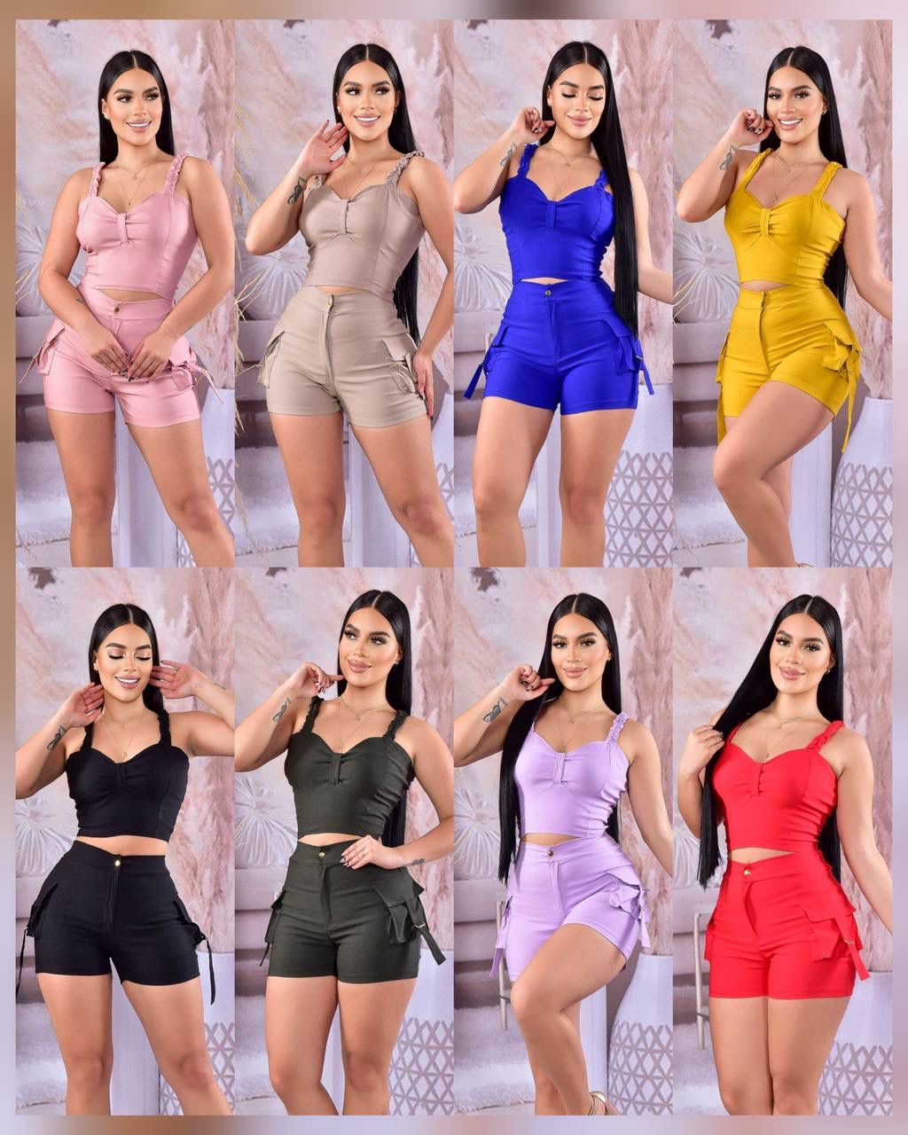 Estilo: Short y blusaMarca: 100% colombiana Tallas: Unica se ajusta a las talla 6, 8, 10Material: BengalinaColor: Lila, Beige, Verde, Negro, Rojo, Azul rey, Palo rosa, Mostaza