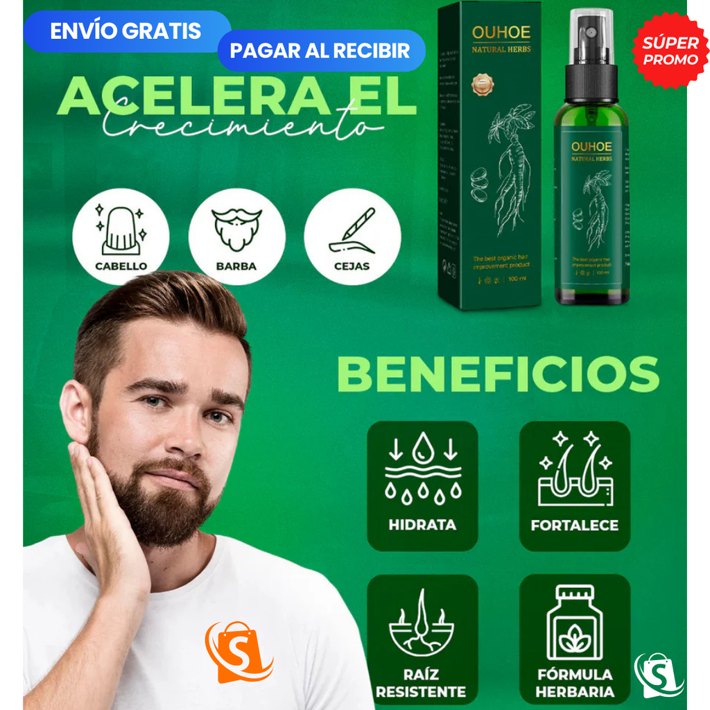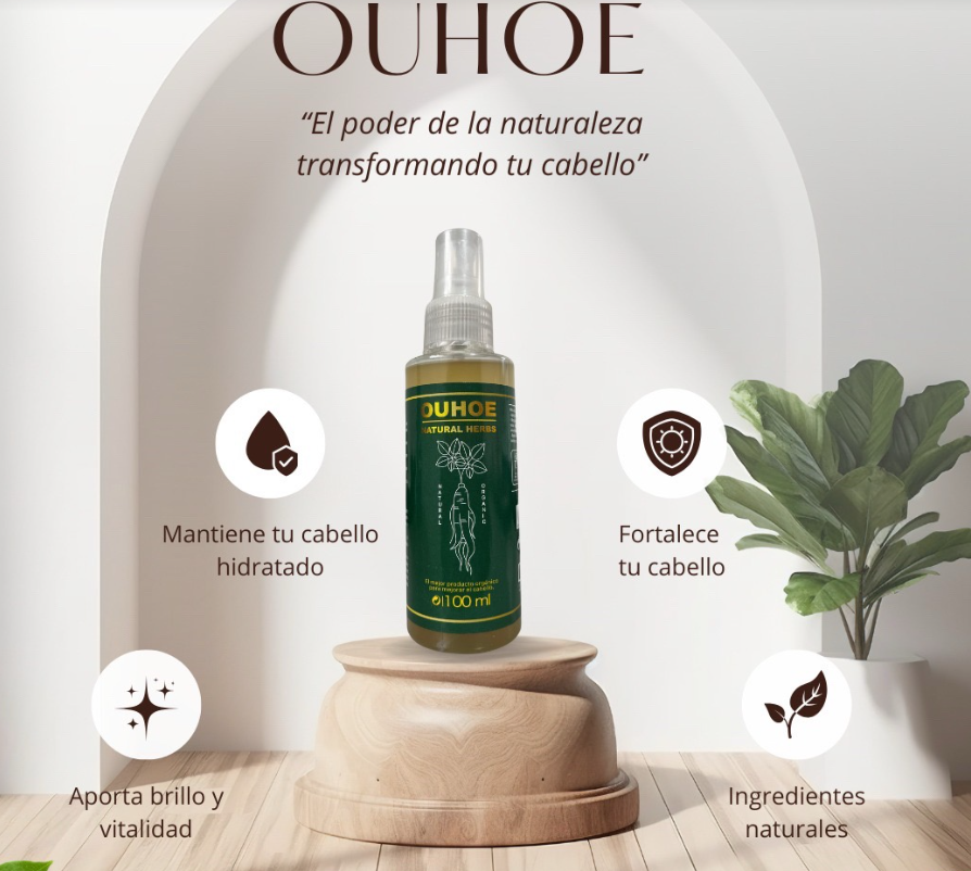 🌿 ¡Cuida tu cabello con el poder natural del Tónico Capilar OUHOE! 🔥 ¡Llévate 2 por el precio de 1 solo por tiempo limitado!